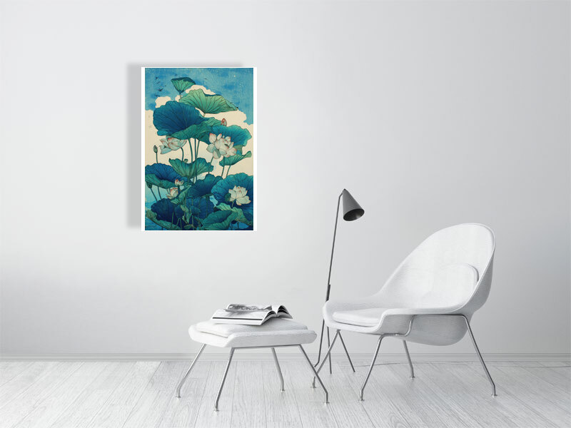 Inspired by traditional Japanese woodblock imagery, the artwork explores growth, stillness, and natural rhythm. The vertical composition and restrained palette invite slow looking and contemplation, making this piece particularly well suited to calm interiors, bedrooms, studios, or spaces intended for rest and reflection.